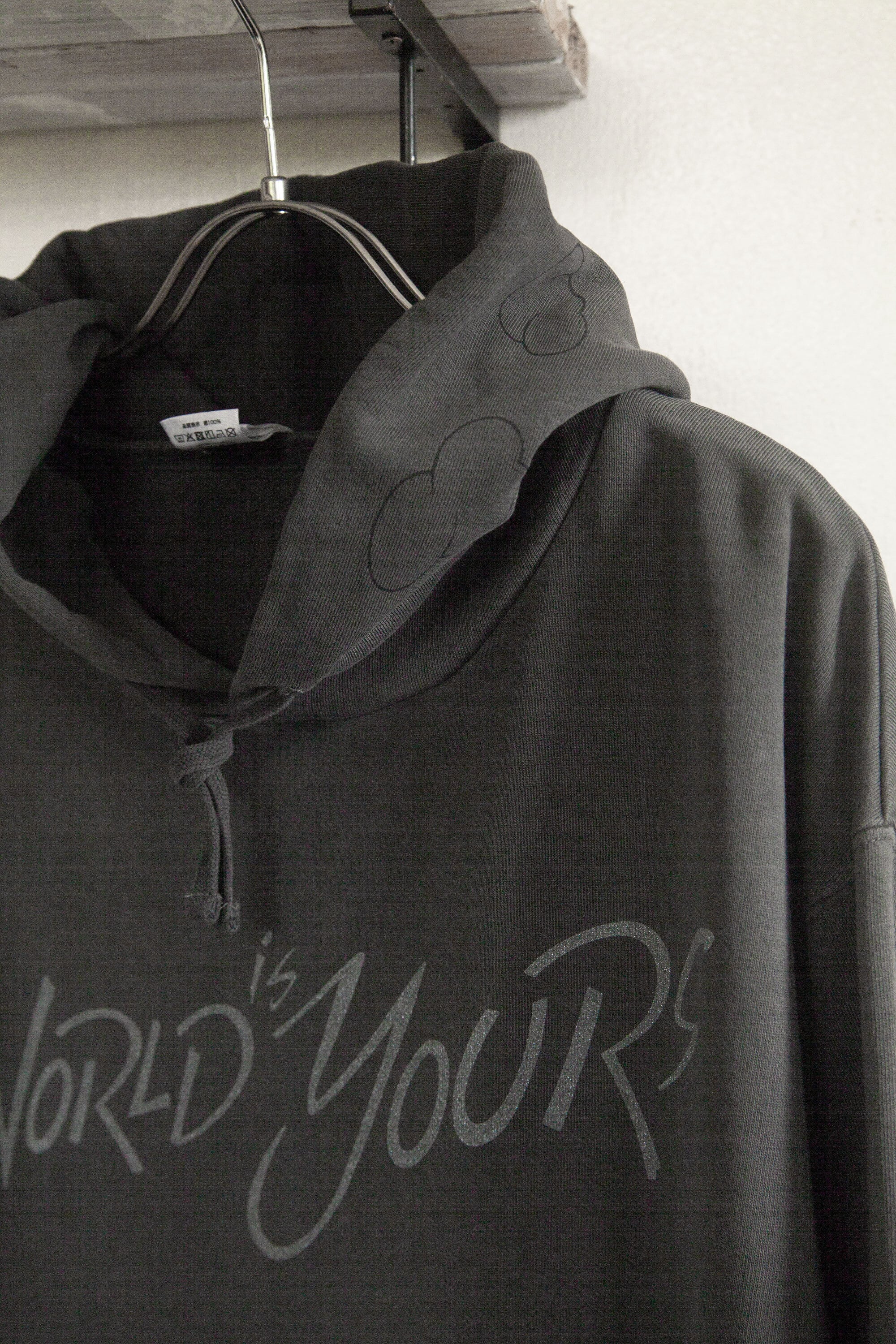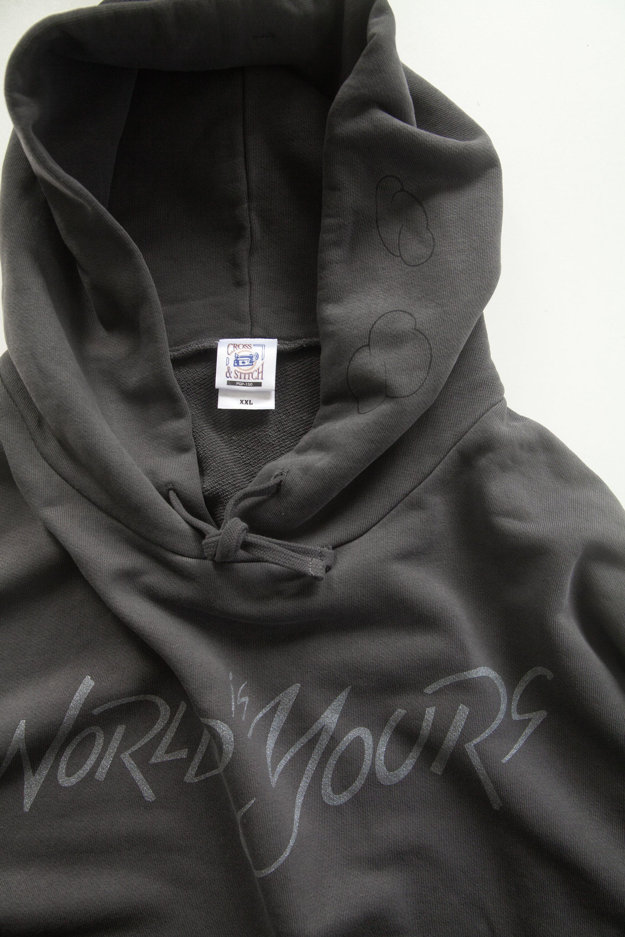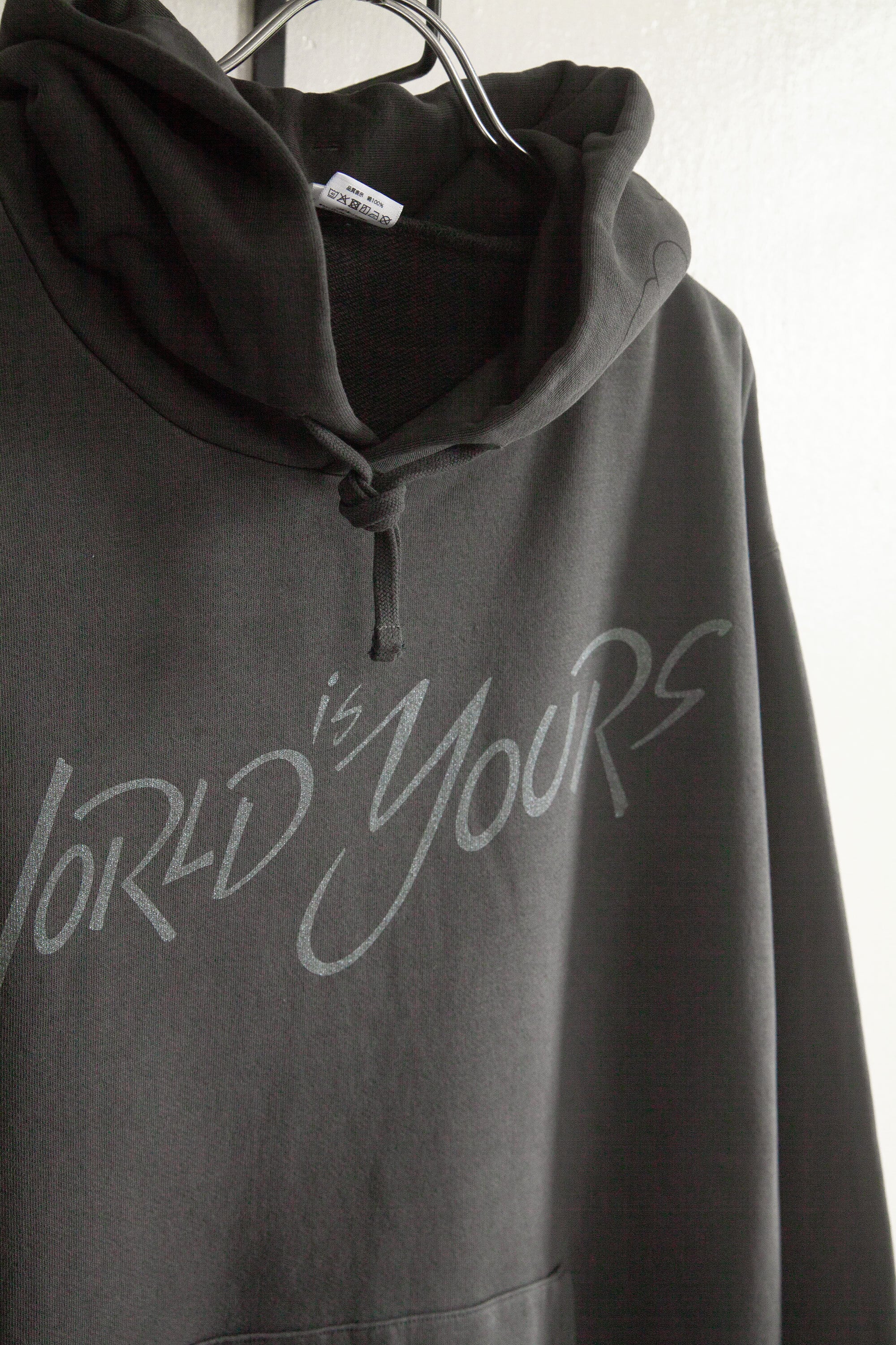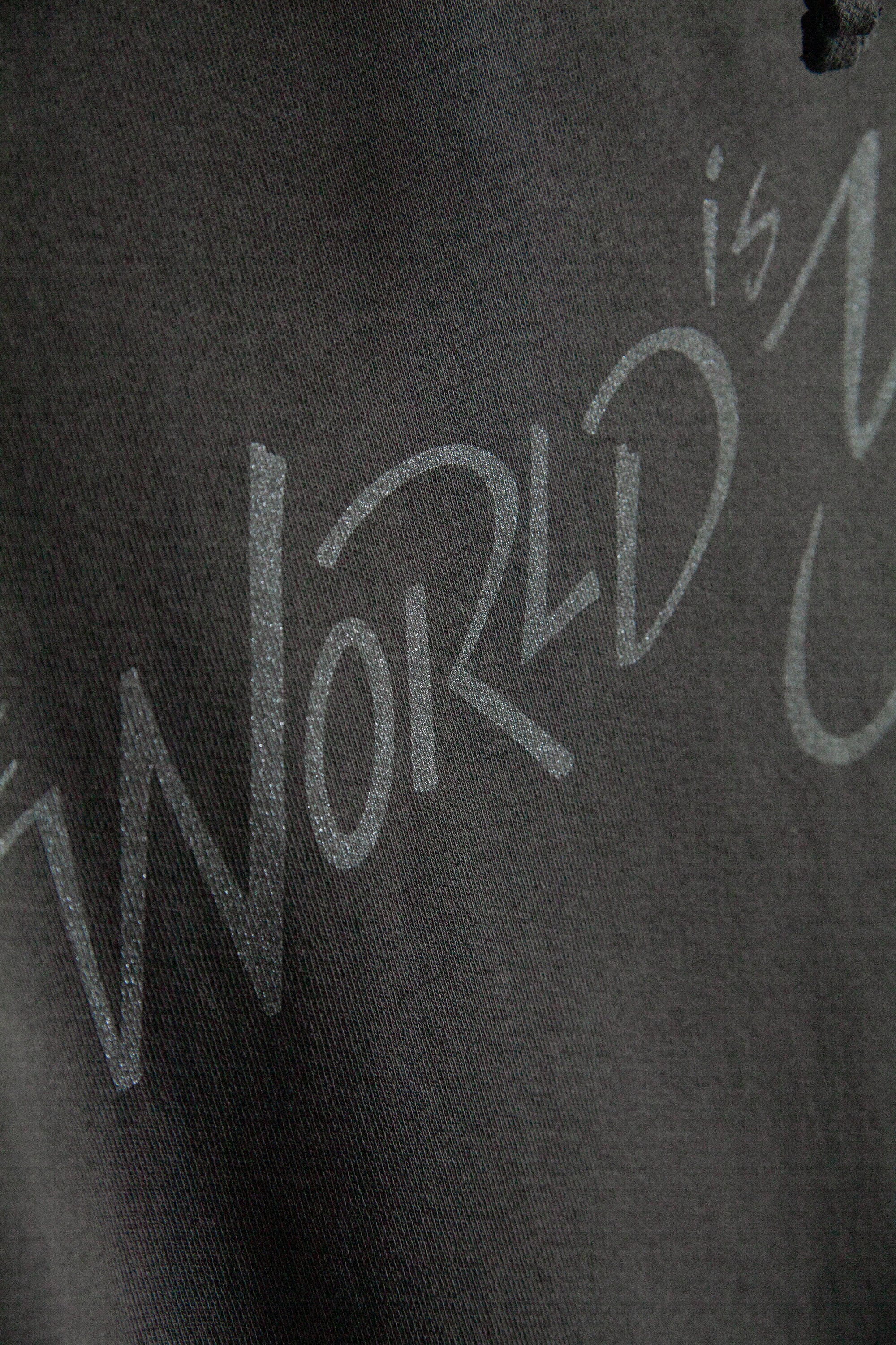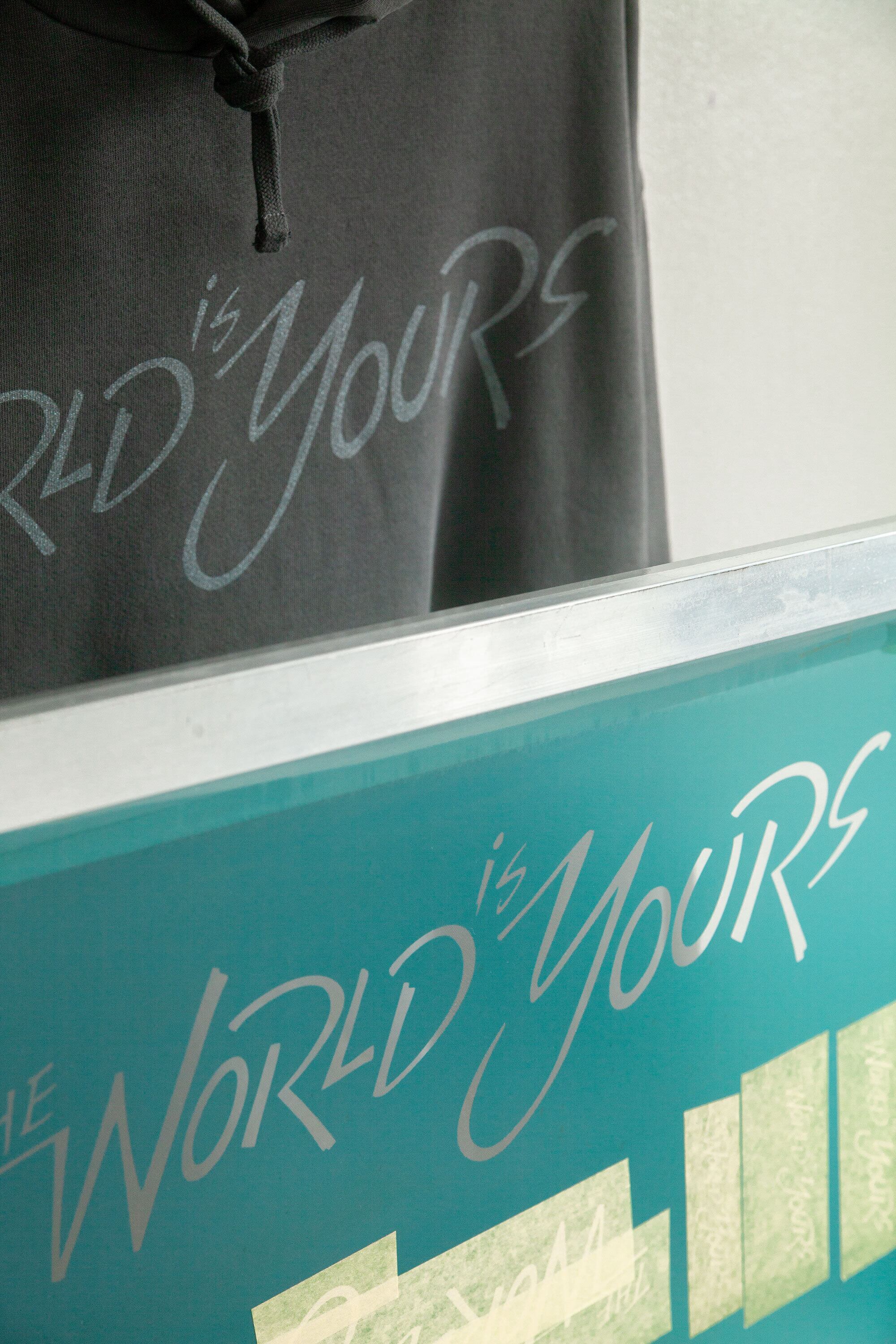 アートワーク" The World is Yours"を、ラメが入ったシルバーでプリントしました。