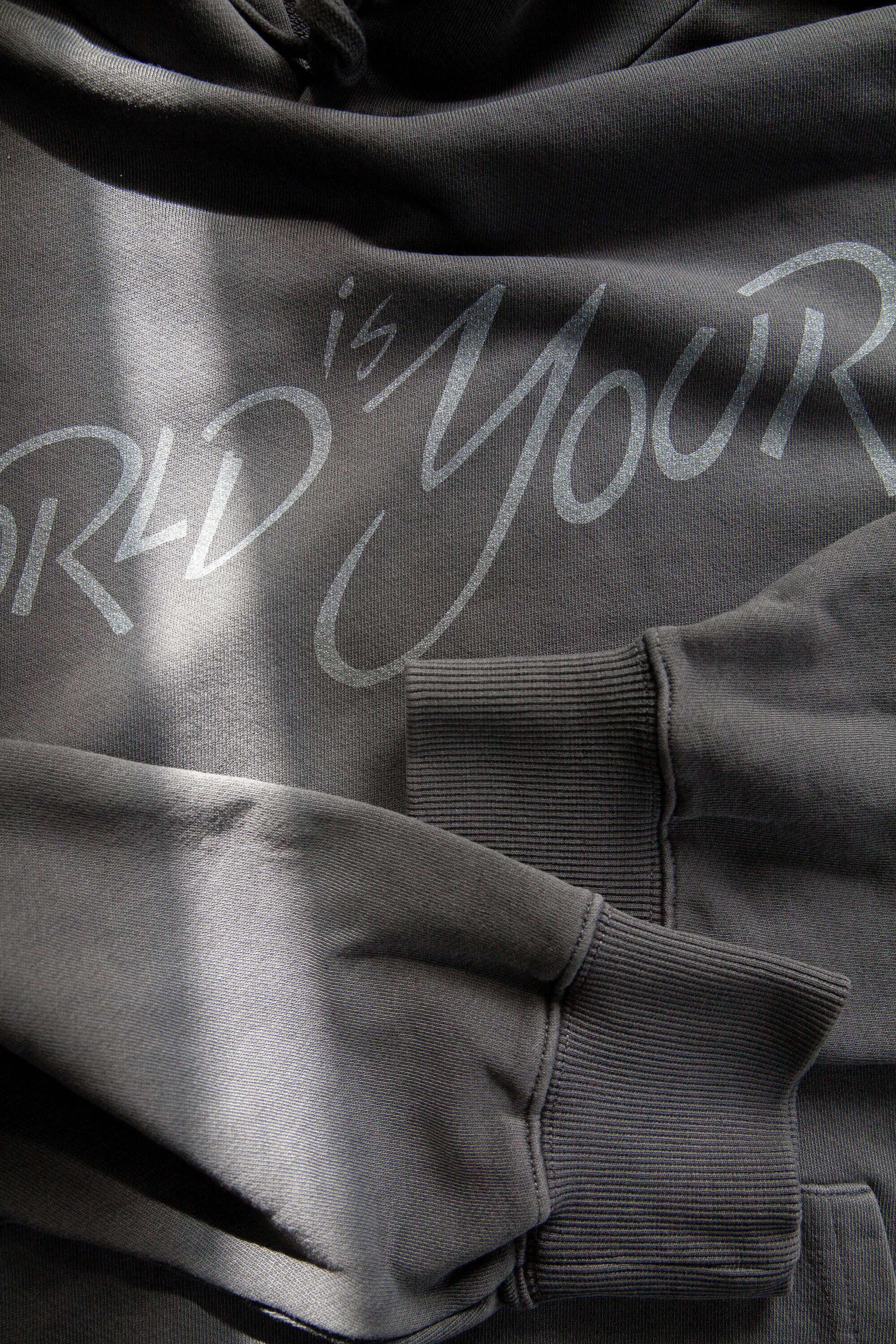 Hoodie - Pigment "The World is Yours" - Silver