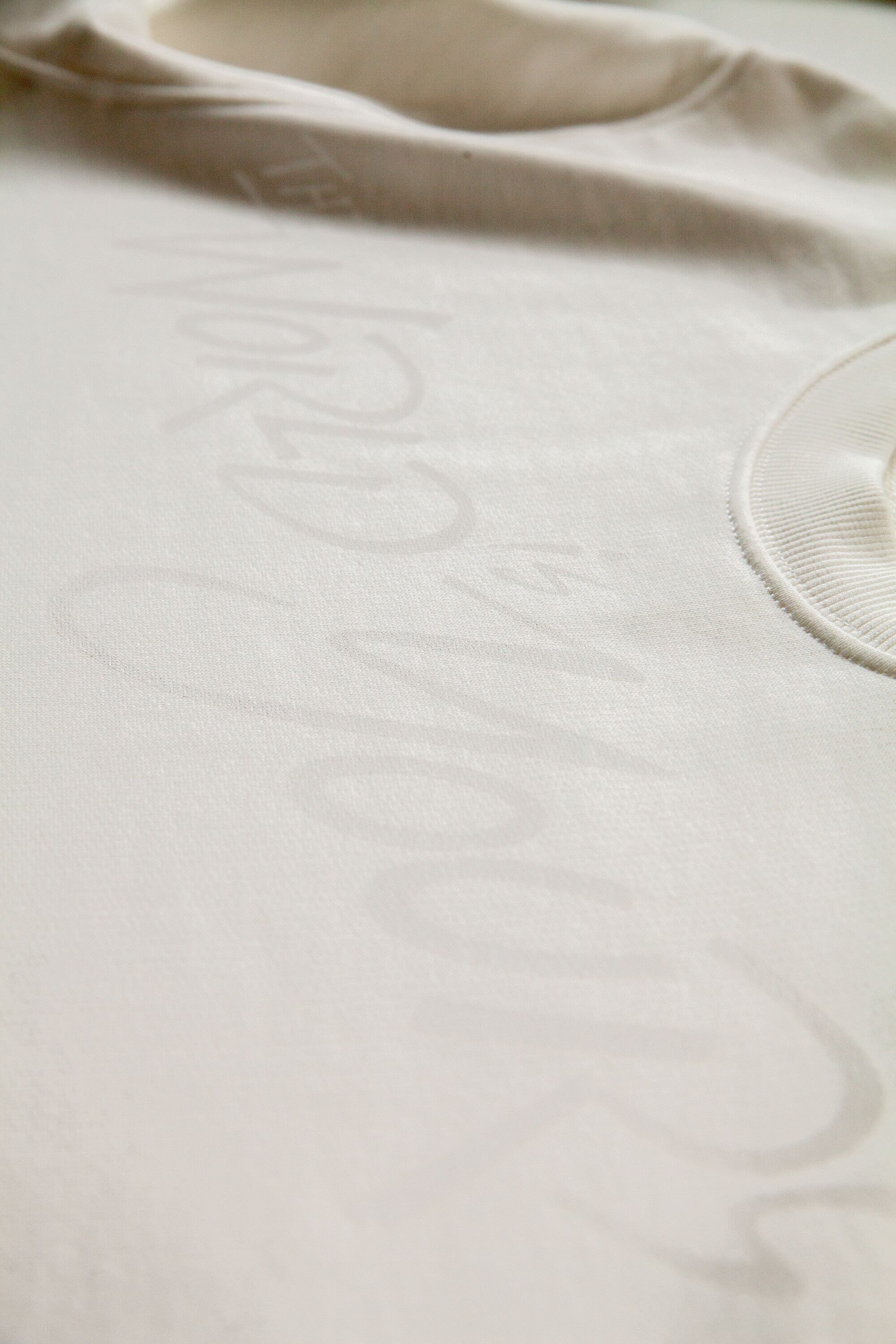 ナチュラルな生地色に白インクでプリントし
