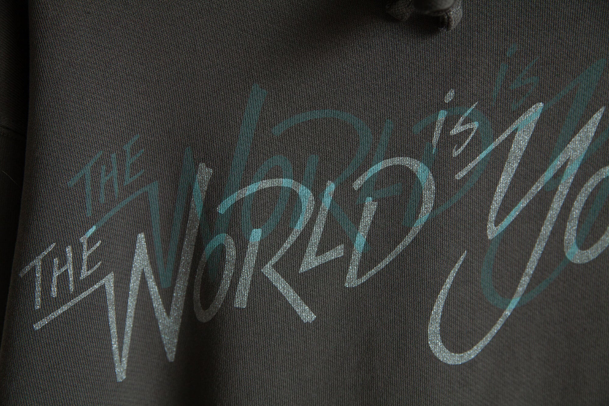 Hoodie - Pigment "The World is Yours" - Silver/Mint