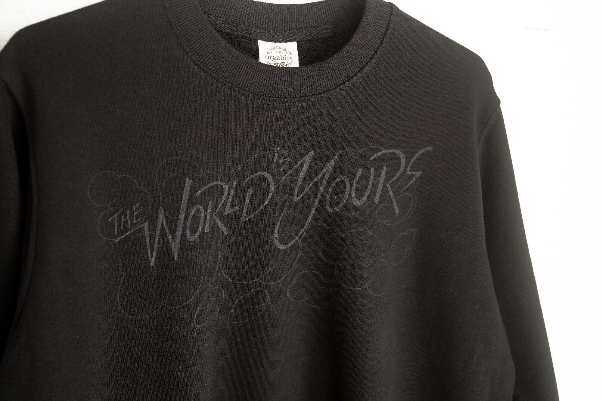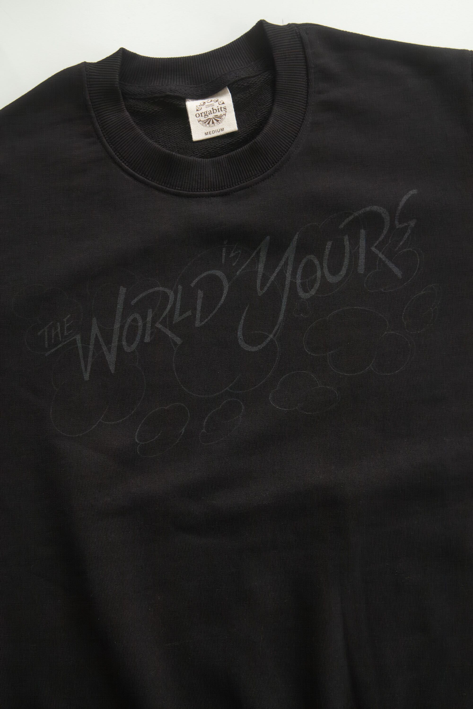 1点もの)SWEAT Organic (M) "The World is Yours / Cloud" - Ink Black / Black
