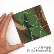 迷彩柄と雲の組み合わせが全て違う、1点ものとなっています。迷彩柄へどのように雲をプリントし、どのようにトリミングするか、そういった過程において作家自身で判断し、ハンドプリントで制作しています。